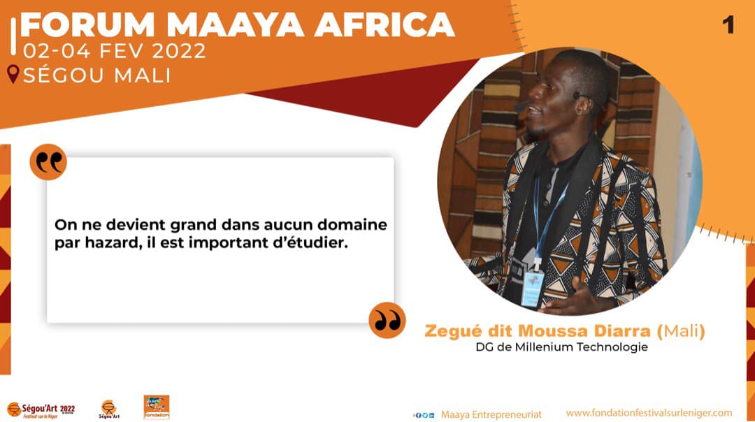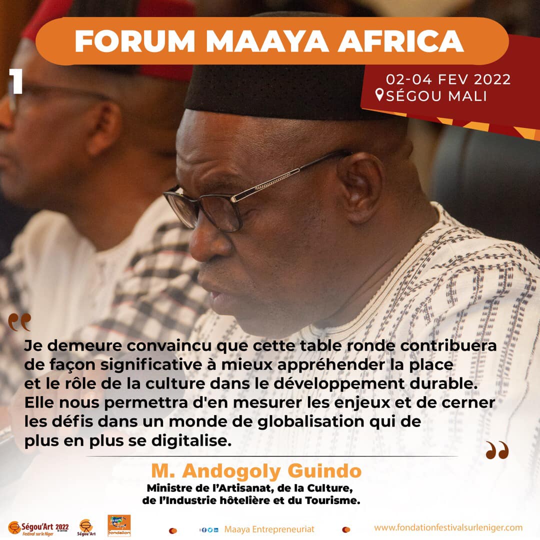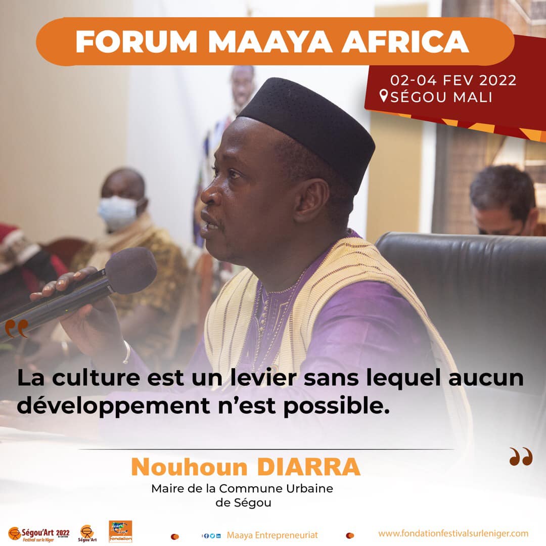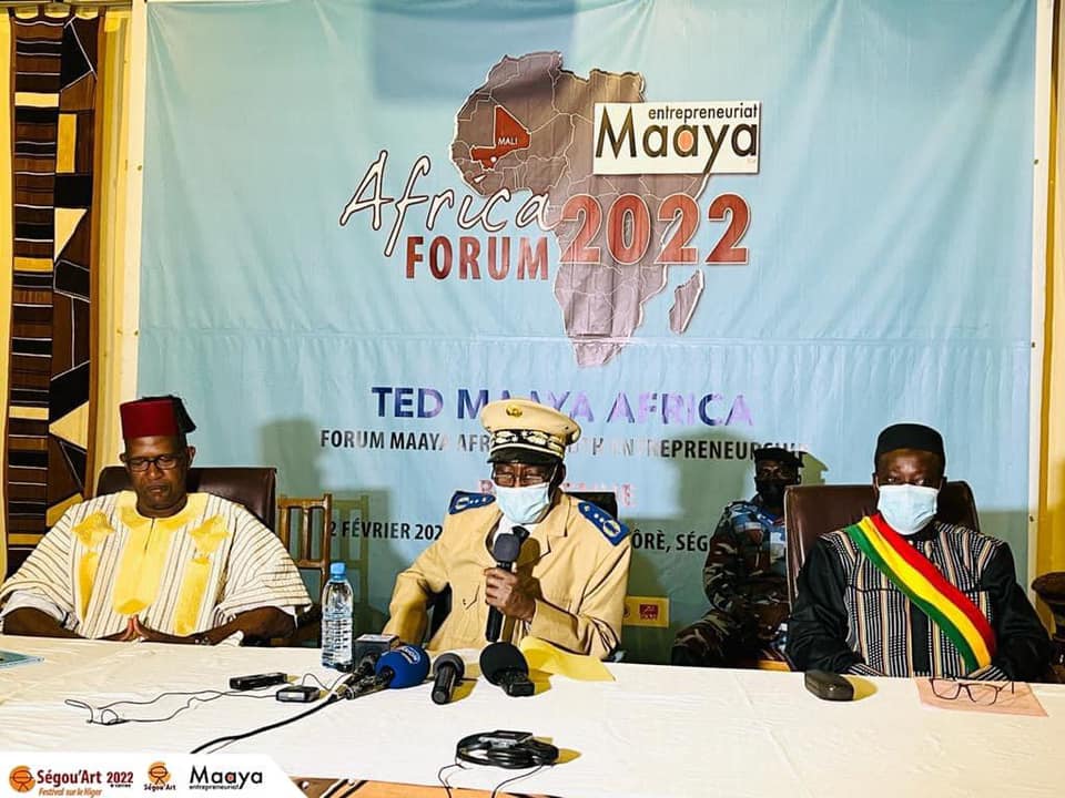 Cérémonie d’Ouverture Officielle du Forum Maaya Africa – Youth Entrepreneurship ce 02 février 2022, présidée par M. le Maire de la Commune Urbaine de Ségou, M. le Représentant du Gouverneur de la région de Ségou, et M. Mamou DAFFE, Président Fondateur de Ségou ’Art – Festival Sur le Niger.