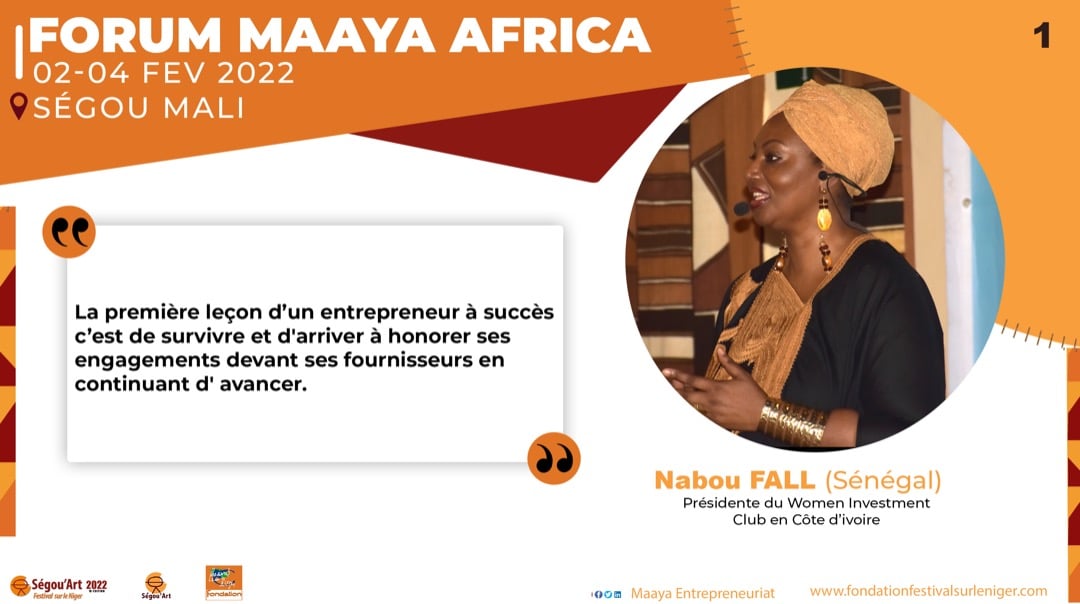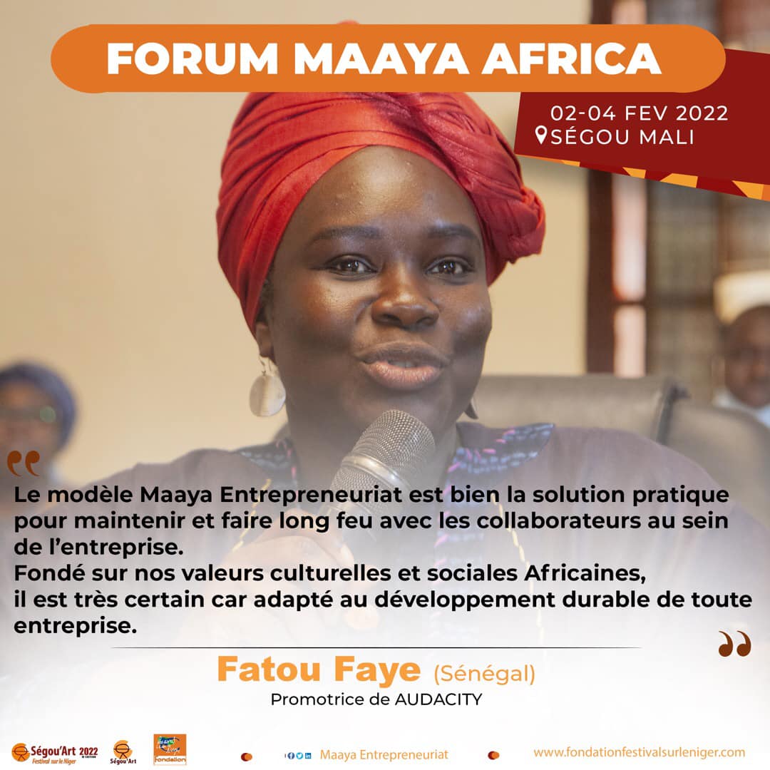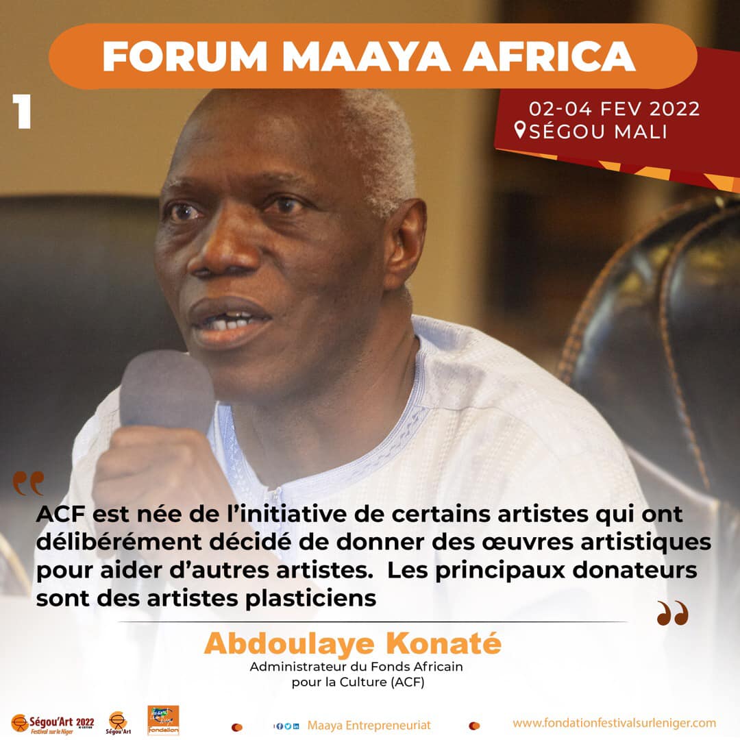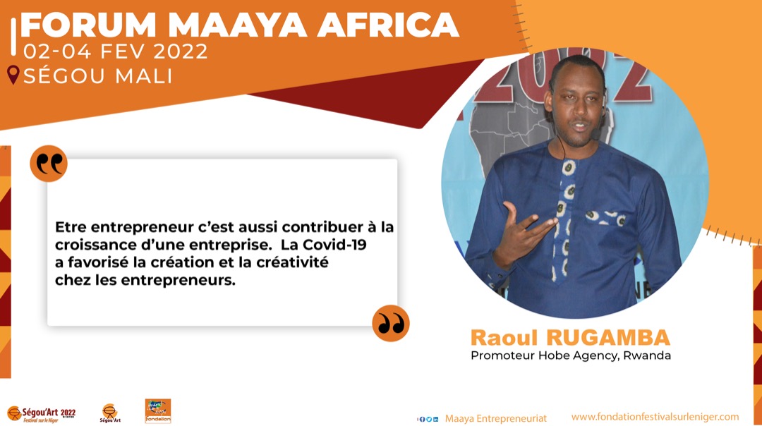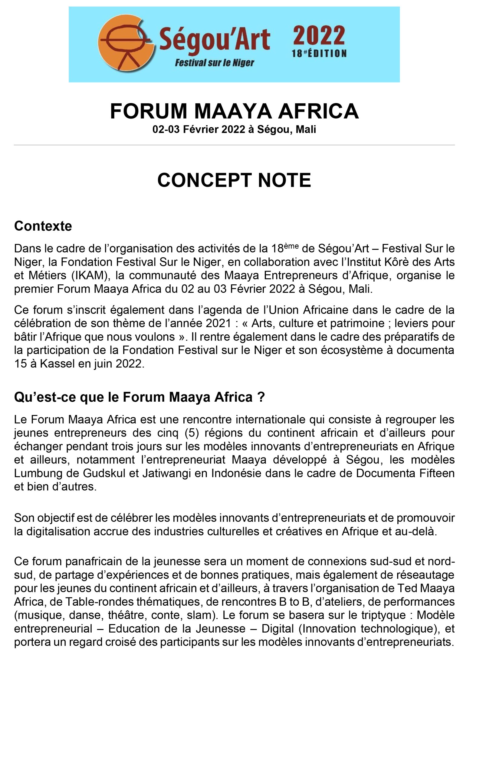 Cérémonie d’Ouverture Officielle du Forum Maaya Africa – Youth Entrepreneurship ce 02 février 2022, présidée par M. le Maire de la Commune Urbaine de Ségou, M. le Représentant du Gouverneur de la région de Ségou, et M. Mamou DAFFE, Président Fondateur de Ségou ’Art – Festival Sur le Niger.
